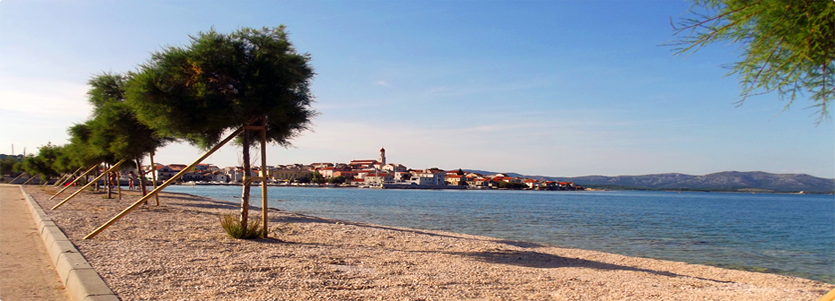 Beach Bilave is neart the centre of Betina, gravel and rocky beach with childrens playground and restaurant in the vicinity.